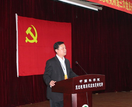 中共長春分院黨組書記、常務副院長甘建國在會上做了重要講話,他充分肯定了自第二次黨代會以來,東北地理所黨委緊緊依靠全體共產黨員和廣大職工,認真貫徹落實科學發展觀和中科院黨組的重大決策,充分發揮政治核心和監督保障作用。不斷創新推進黨的建設,研究所的科技創新能力和可持續發展能力顯著增強。他同時衷心希望通過這次大會,全面總結過去四年研究所黨建工作成績,謀劃未來五年研究所黨建工作的發展戰略和主要任務,為研究所科技創新提供強有力的思想保證和精神動力,團結和動員全所黨員和廣大職工認清形勢、開拓創新、扎實工作,把東北地理所早日建成“四個一流”的研究所。