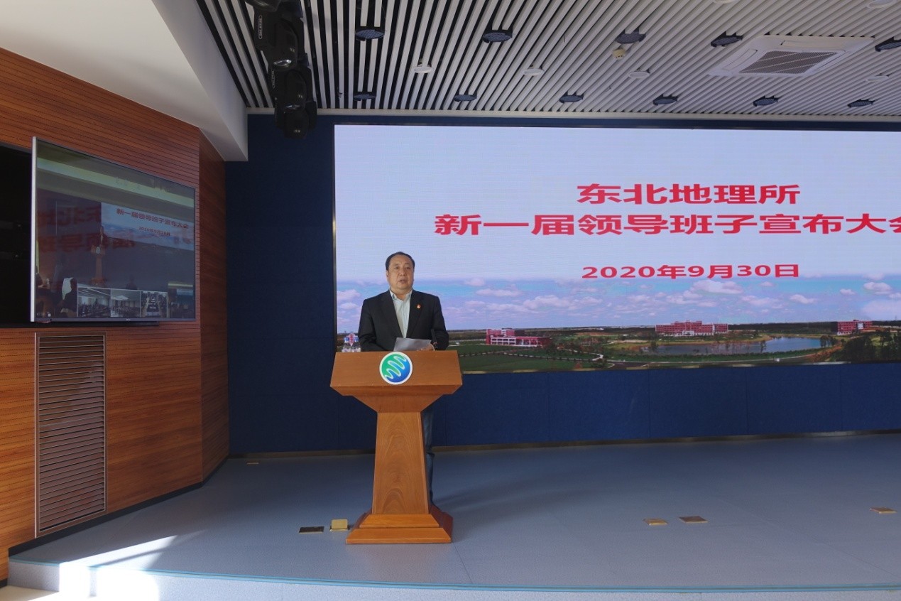 2020年9月30日,中國科學院東北地理與農業生態研究所召開了新一屆領導班子宣布大會。中國科學院長春分院分黨組書記、副院長馬七軍,院長甘建國,副院長劉曉冰,組織人事處處長彥飛,東北地理所領導班子成員、院士、黨委委員、紀委委員、管理部門正副職、實驗室(中心)正副主任、黨支部(黨總支)書記、正高級專業技術人員、副高級專業技術人員、管理部門全體人員、工會代表、離退休職工代表、研究生代表等170余人參加本次會議。會議由馬七軍主持。