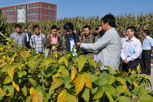 在長春綜合農(nóng)業(yè)試驗站,陰和俊副院長實地考察了玉米育種試驗田、超高產(chǎn)耐鹽堿東稻4號水稻新品種示范田、高光效新型種植模式示范田、大豆分子育種種質(zhì)資源圃,關(guān)義新、楊福、劉景雙和馮獻(xiàn)忠研究員分別就試驗區(qū)的試驗設(shè)置、研究內(nèi)容及取得進(jìn)展做了匯報。陰和俊副院長對我所近年來取得的一系列成果給予了肯定,并就成果的投入成本、效益提升及應(yīng)用推廣情況等問題進(jìn)行了細(xì)致的了解。