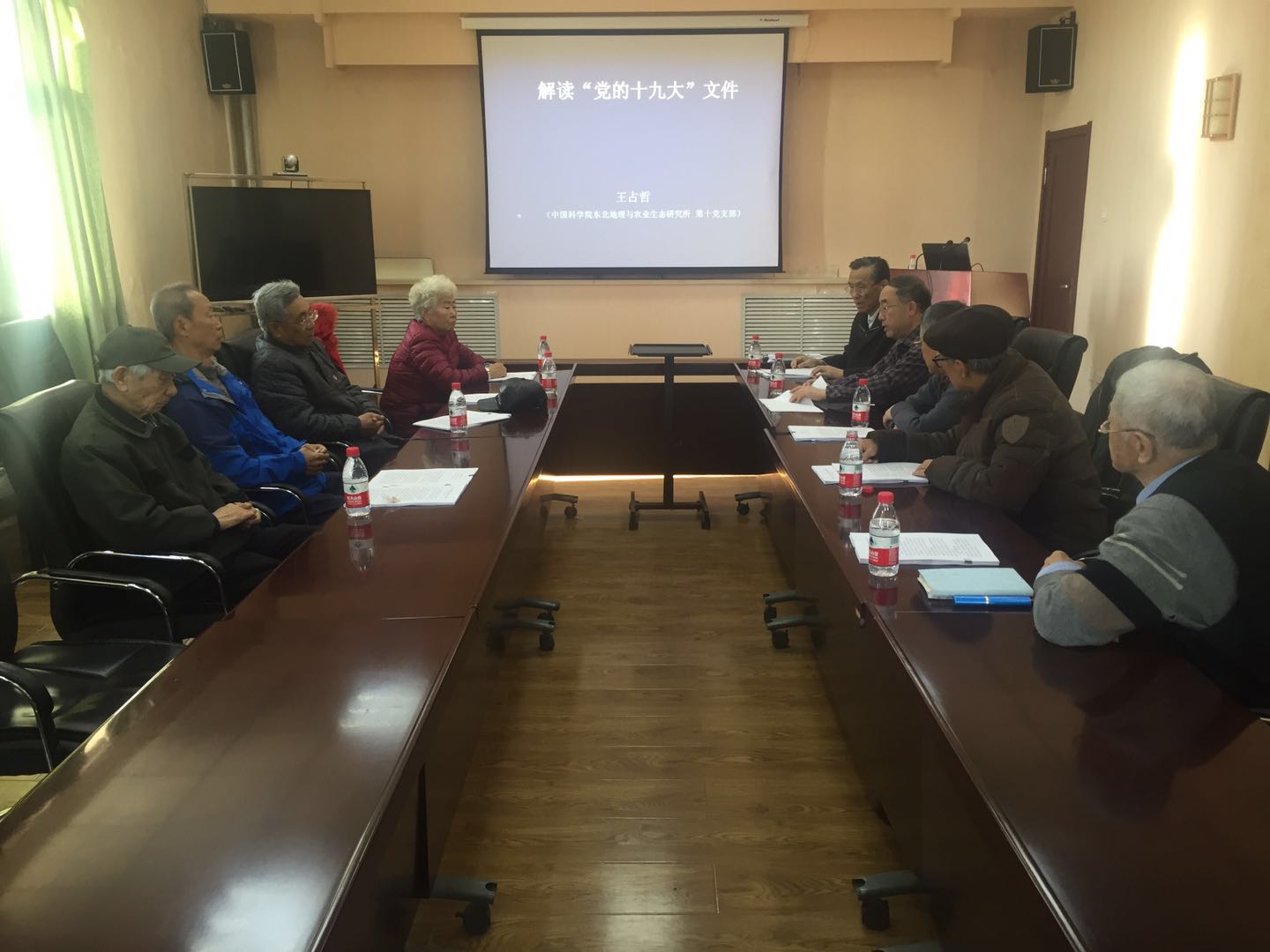 哈區(qū)離退休支部書記王雪松首先傳達了中國科學院黨組《關于學習宣傳貫徹黨的十九大精神的通知》,并從大會主要成果、會議亮點、會議主要內(nèi)容等三個方面暢談了學習體會,支部副書記王占哲以《學習黨的十九大文件》為題給大家上了一堂精彩的黨課,特別是針對黨章的修改部分進行了全面的講解。