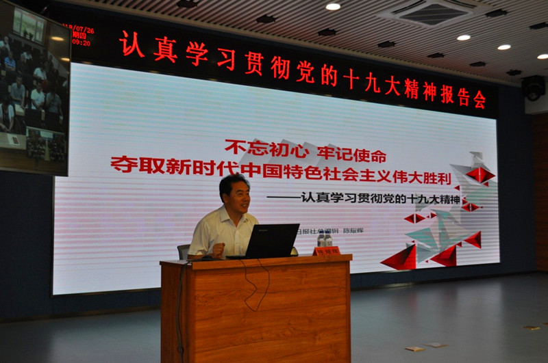 7月26日下午,為把學(xué)習(xí)宣傳貫徹黨的十九大精神不斷引向深入,東北地理所召開學(xué)習(xí)十九大精神專題報告會(哈區(qū)視頻),大會邀請黨的十九大精神吉林省委宣講團(tuán)成員、吉林日報社總編輯陳耀輝做專題報告,全所190余位黨員和職工參加報告會。