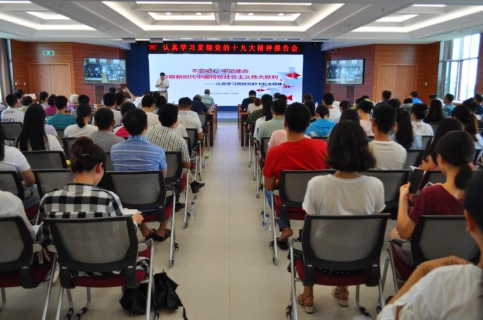 陳耀輝以《不忘初心 牢記使命 奪取新時代中國特色社會主義偉大勝利——認(rèn)真學(xué)習(xí)貫徹黨的十九大精神》為題,緊緊圍繞黨的十九大主題和發(fā)展成果、習(xí)近平新時代中國特色社會主義思想、過去五年的歷史性成就和歷史性變革、中國特色社會主義進(jìn)入新時代、我國社會主要矛盾的變化、兩個一百年奮斗目標(biāo)的戰(zhàn)略部署、堅定新時代的文化自信、全面從嚴(yán)治黨等八個大的方面,對黨的十九大精神進(jìn)行了詳細(xì)解讀,報告內(nèi)容翔實(shí),案例豐富,與實(shí)際生活聯(lián)系緊密,深刻闡釋了黨的十九大提出的一系列重要思想、重要觀點(diǎn)、重大論斷、重大舉措。報告站位高、解讀透、信息量大、系統(tǒng)深入,圍繞十九大精神“不忘初心、牢記使命”這一主題,生動闡述了中國共產(chǎn)黨在長期奮斗中形成的“為中國人民謀幸福,為中華民族謀復(fù)興”的初心和使命,對全所深入學(xué)習(xí)貫徹十九大精神,推動科技創(chuàng)新工作必將產(chǎn)生積極的促進(jìn)作用。