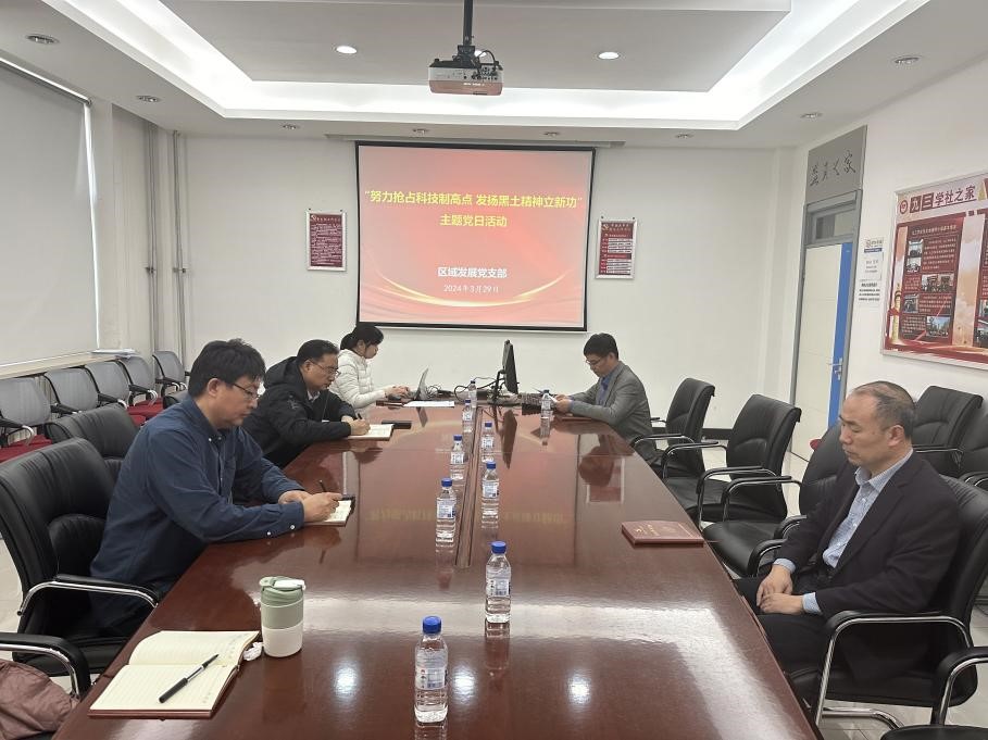3月29日,區(qū)域發(fā)展黨支部組織開展“努力搶占科技制高點(diǎn) 發(fā)揚(yáng)黑土精神立新功”主題黨日活動(dòng),活動(dòng)由支部書記劉文新主持。