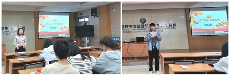 首先,吉麗從高度重視黨紀學習教育是我們黨的優良傳統、開展黨紀學習教育推動全面從嚴治黨向縱深發展、開展好黨紀學習教育切實將學習成果轉化為履職成效三方面為支部黨員講紀律專題黨課,并同與會黨員就黨紀學習教育進行了深入學習和討論。隨后,吉麗帶領支部黨員原原本本學習了《中國共產黨紀律處分條例》第一編內容,同時對深入挖掘本所老科學家科研報國、廉潔自律的故事以及開展“一支部一品牌”活動進行了介紹和探討。