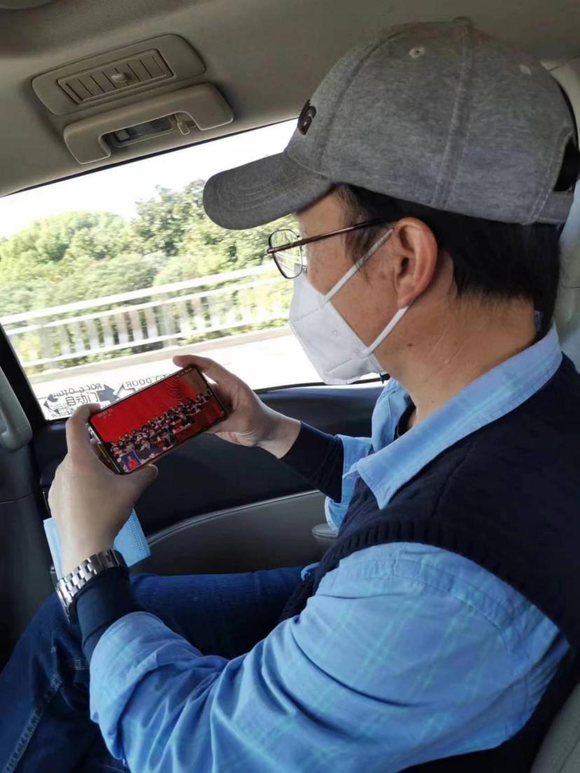 院黑土重點實驗室田春杰研究員在野外采樣途中觀看二十大直播