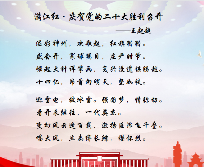 王起超即興賦詩(shī)《滿(mǎn)江紅·慶賀黨的二十大勝利召開(kāi)》。