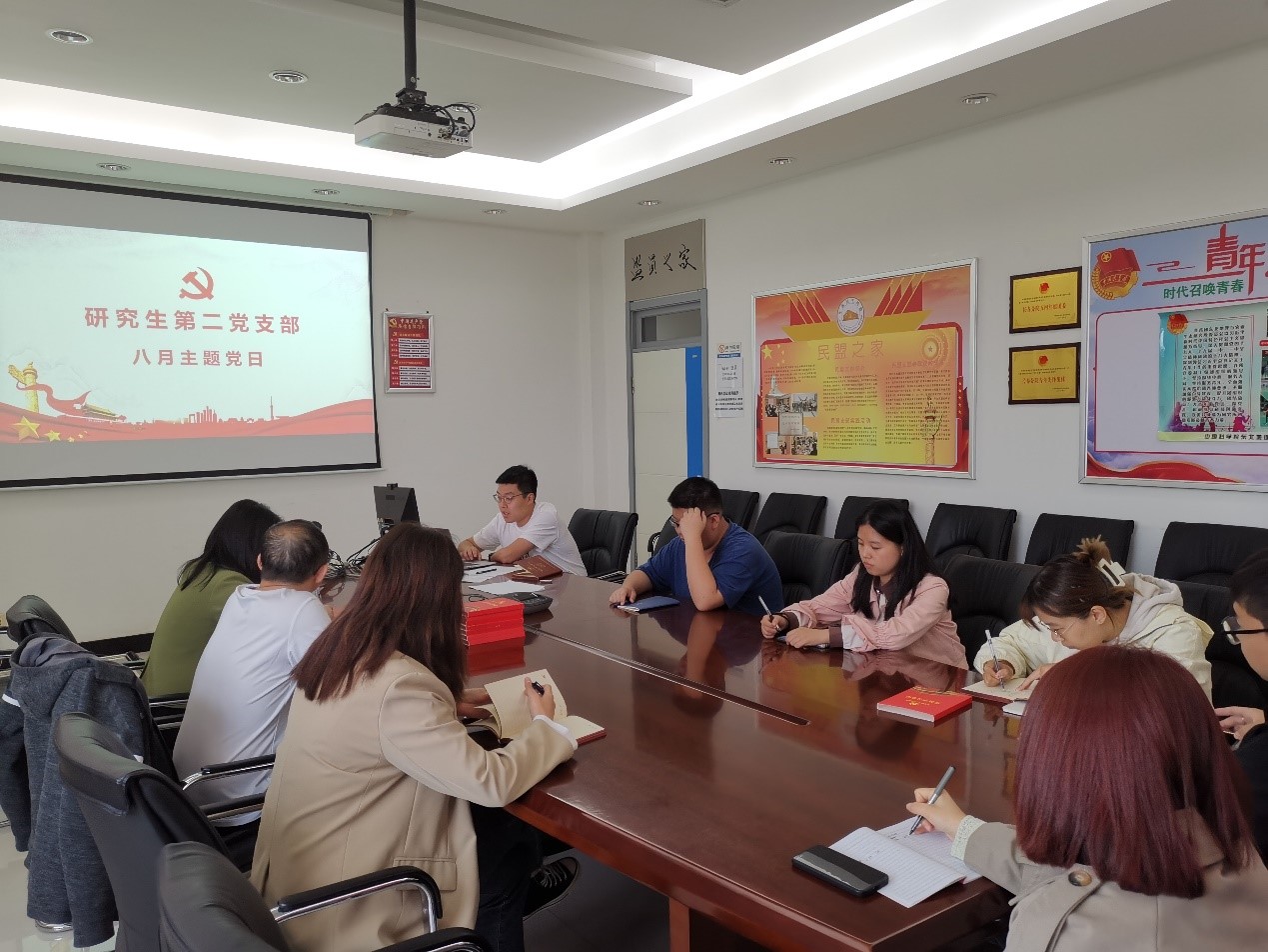8月26日,研究生第二黨支部在綜合樓四樓416會議室召開8月主題黨日活動。支部書記楊奇峰主持會議。