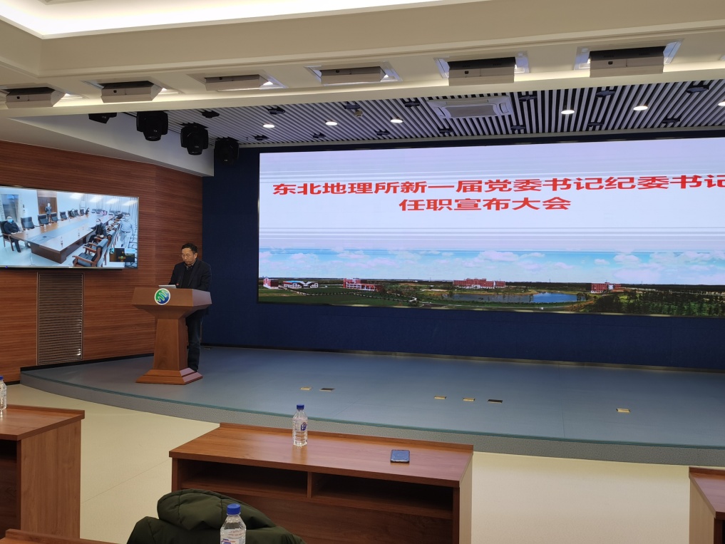 2021年1月18日,東北地理所召開新一屆黨委書記紀委書記任職宣布大會。中國科學院長春分院分黨組書記、院長甘建國,黨群工作處處長尚陽,組織人事處處長彥飛以及東北地理所黨政班子成員,黨委委員,紀委委員,機關職能部門及重點實驗室(中心)負責人,支部(總支)書記等參加了宣布大會,會議由甘建國主持。